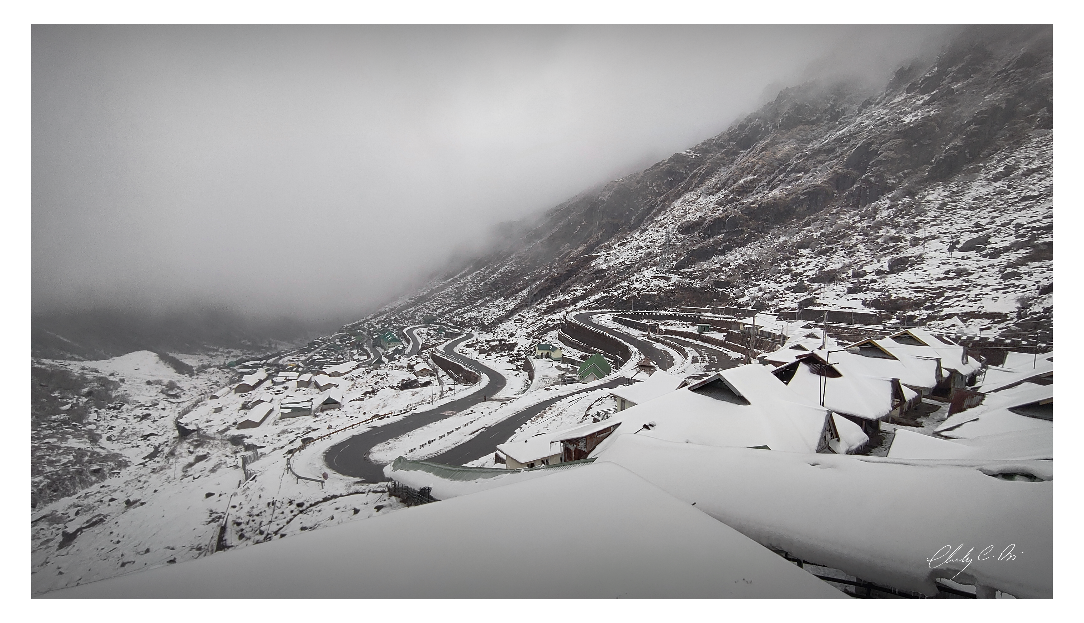 Captured on the winding roads leading to Tsomgo Lake, this frame reflects the quiet drama of Sikkim’s high-altitude landscape — where mist moves like breath and the mountains unfold layer by layer.